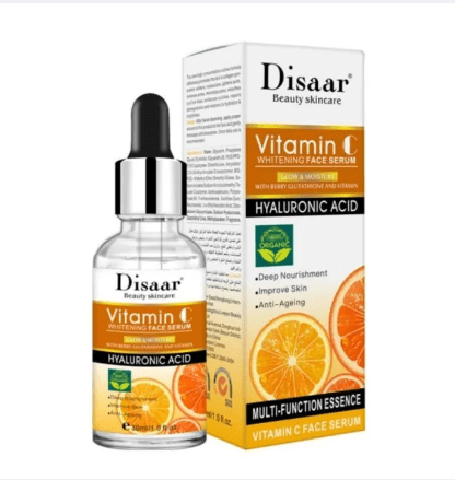 Disaar Vitamin C Facial Serum is concentration active formula affectively promotes the skin´s collagen generation whitens, moisturises, lightens spots, removes acnes, minimises pores, smooths out fine lines enhances cuticles, repairs damage skin and restores also hydration & brightness.